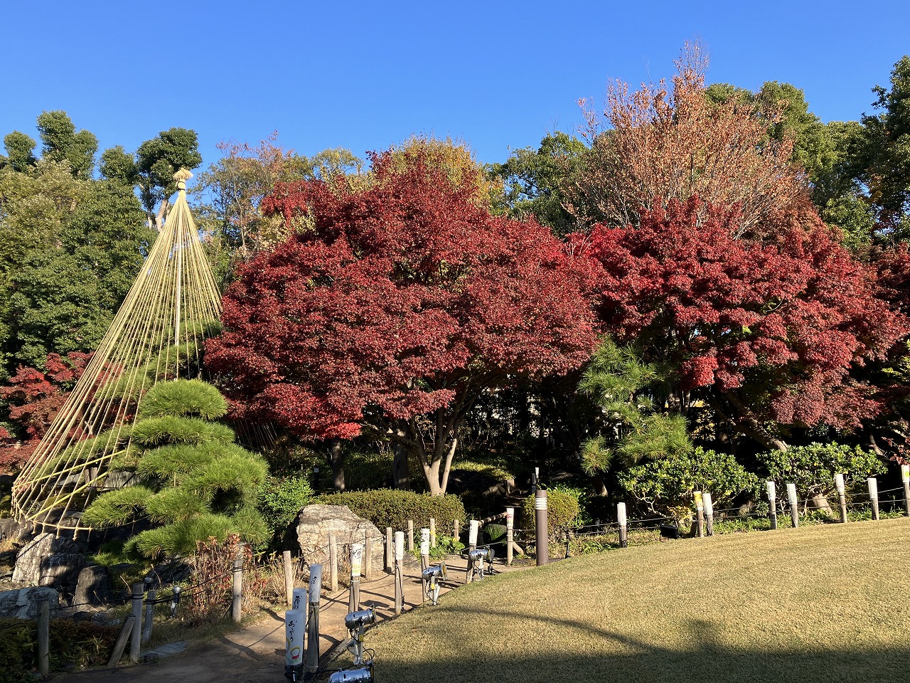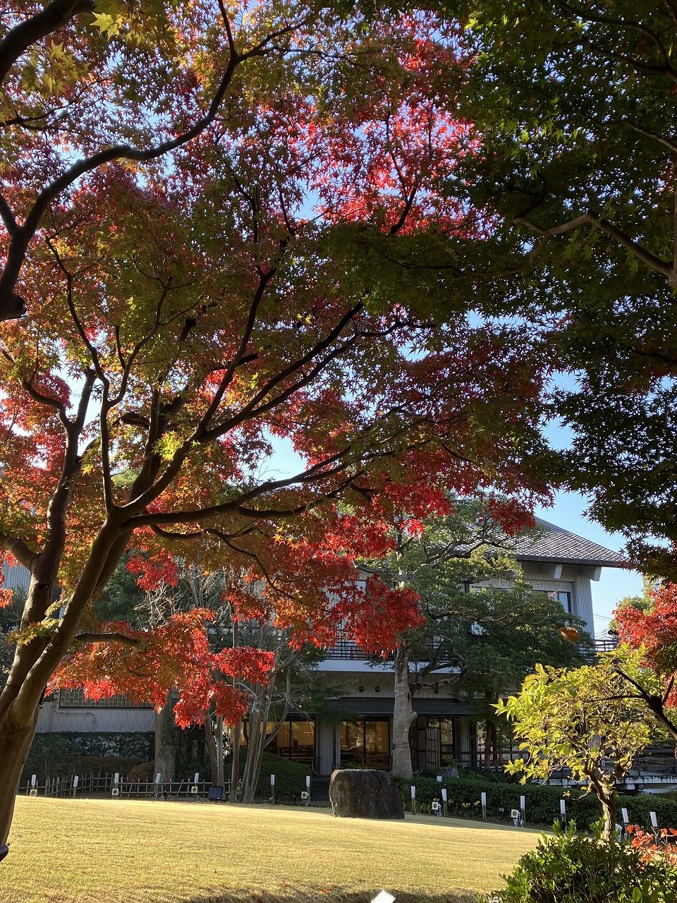 滝・池・小川・築山などがある「池泉回遊式」の日本庭園です。庭のところどころに配された雪見灯籠・四阿・待合・春日灯籠などが趣を添え、四季折々の花たちが訪れる人の目を楽しませてくれます。