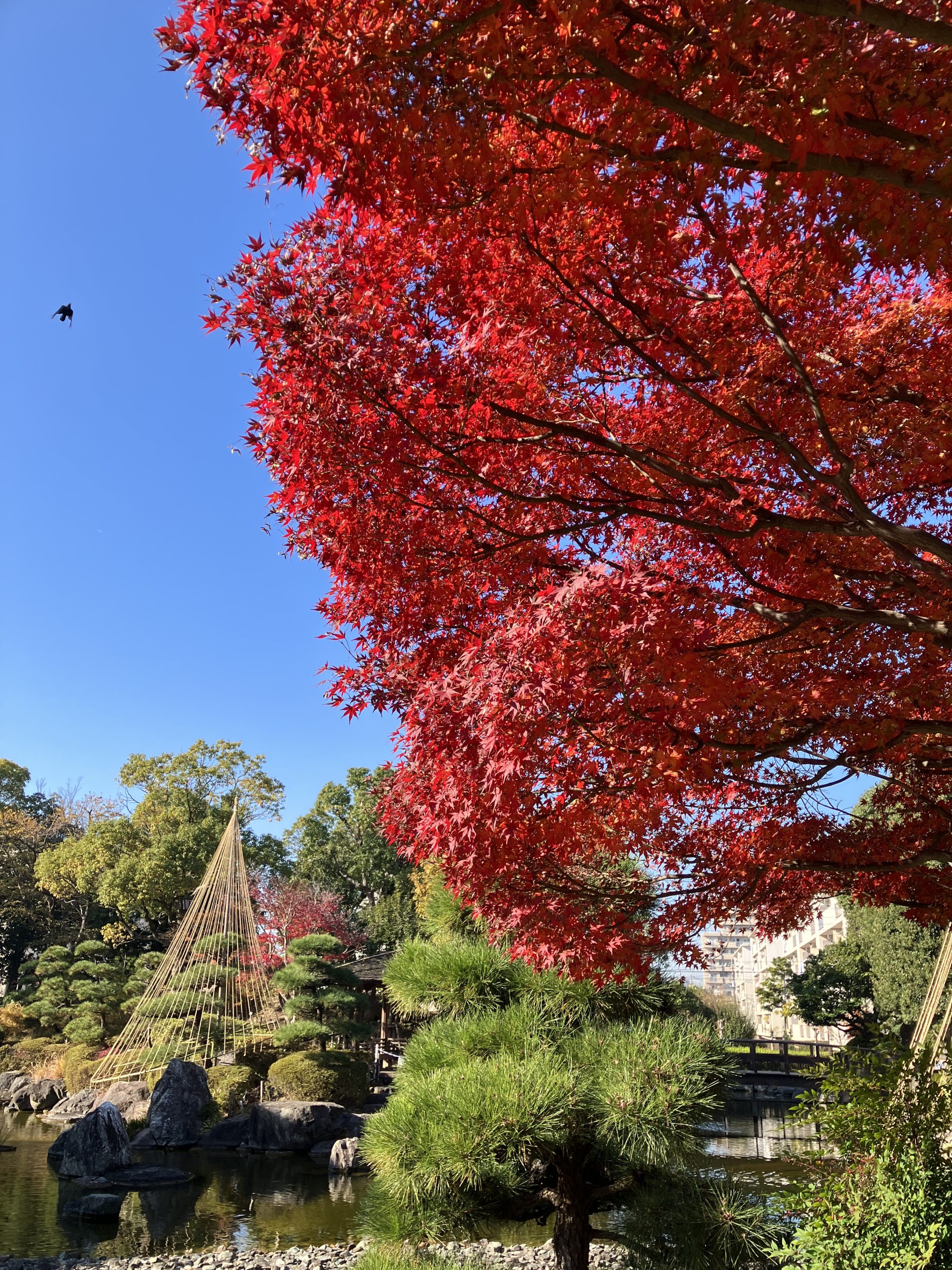 滝・池・小川・築山などがある「池泉回遊式」の日本庭園です。庭のところどころに配された雪見灯籠・四阿・待合・春日灯籠などが趣を添え、四季折々の花たちが訪れる人の目を楽しませてくれます。