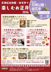 花畑記念公園・桜花亭は1/2から開園、開館しています。