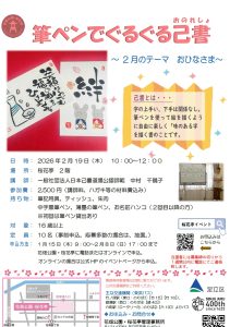 筆ペンでぐるぐる己書~2月のテーマ おひなさま~